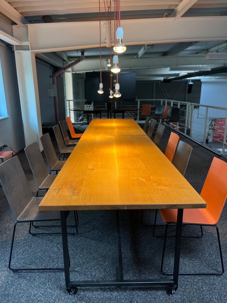 - Großer Tisch mit 10 Stühlen, Sofaecke für ca. 6 Personen, Whiteboard und Moderationskoffer. Auf Wunsch mit großem Bildschirm (HDMI).